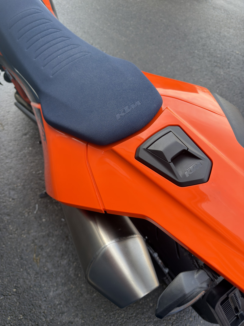 La KTM 690 SMC R oblitère la concurrence et s'impose comme le roi incontesté de sa catégorie. Offrant au pilote une maniabilité agile, la meilleure puissance de sa catégorie et une ergonomie axée sur le pilote, la KTM 690 SMC R incarne la notion de PRÊT À LA COURSE avec un dévouement de 110 % à son métier. Qu'il s'agisse de glissades dans les virages, de power-wheelies sur les crêtes ou de coups durs dans les cols de montagne serrés, le roi du supermotard pour la rue est à l'attaque.