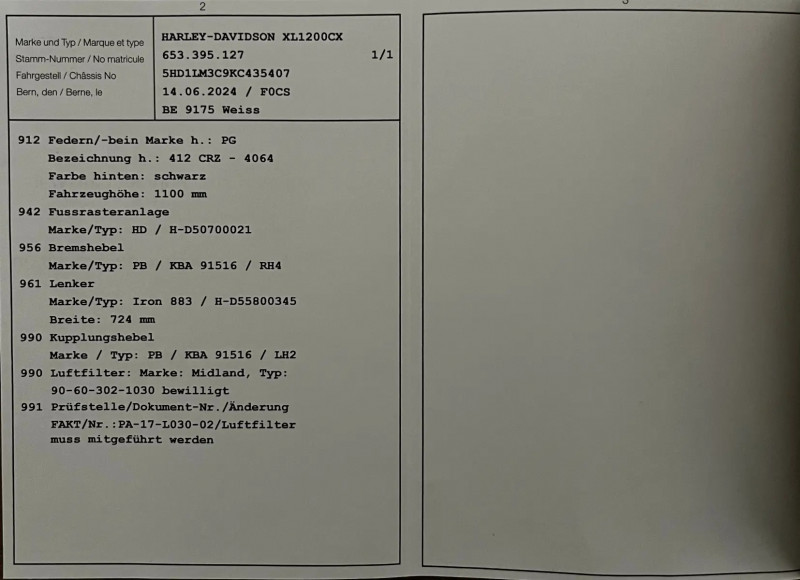 Der Harley hat sehr viele Optionen und alles ist eingetragen!