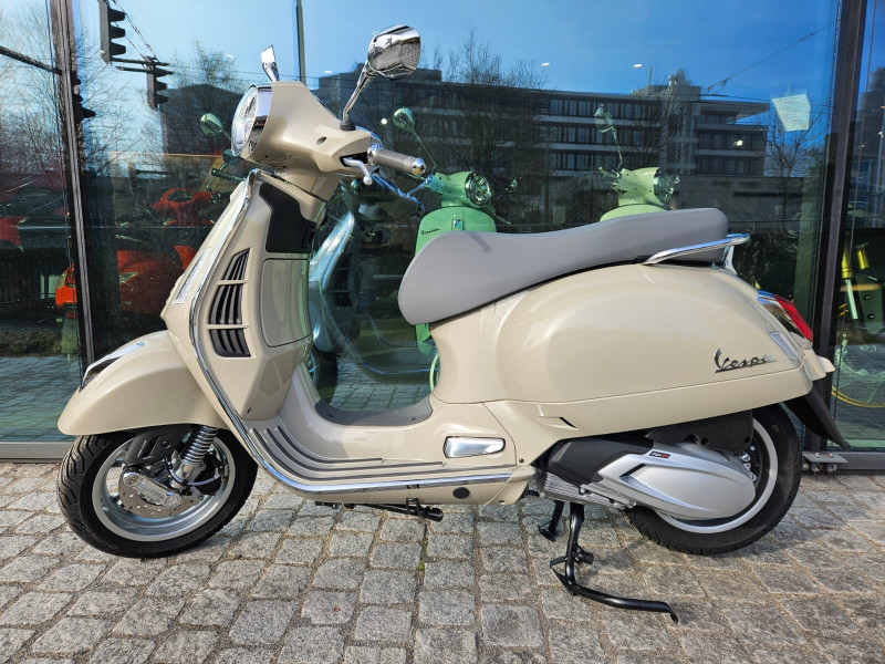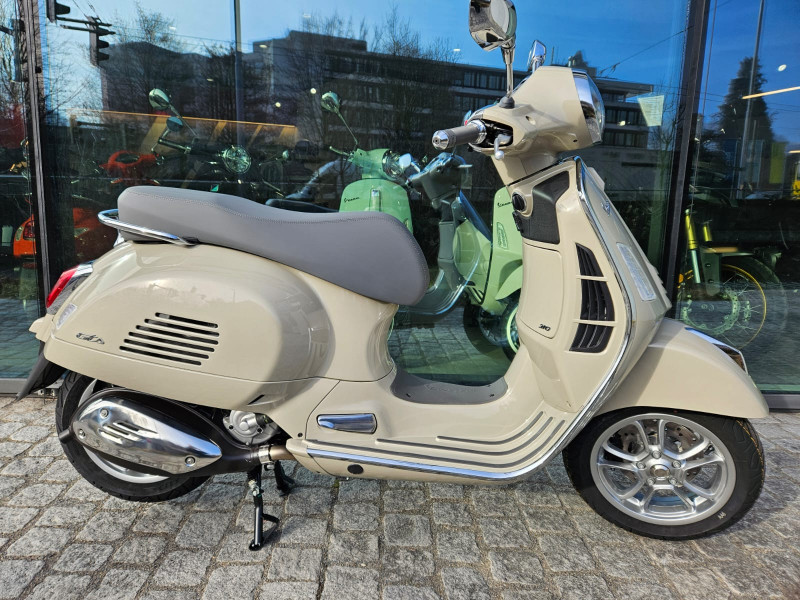 Diese wunderschöne und kultige Vespa GTS 310 E5+ in "Beige Avvolgente" ist NEU und kurzfristig ab Lager Stahlmoto verfügbar. Neupreis Fr. 6695.- plus Fr. 300.- Bereitstellungs-Pauschale (voller Tank, Vignette, Formalitäten) 48 Mt. Vespa Werksgarantie.