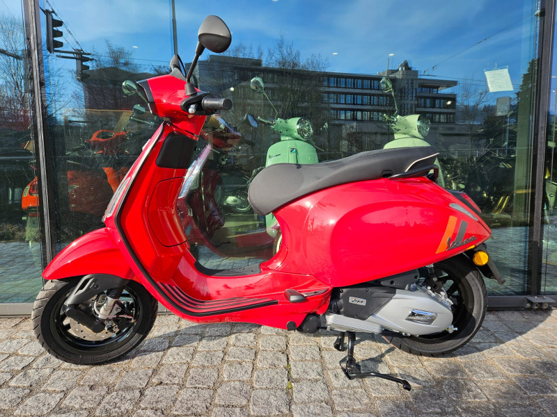 Diese wunderschöne und sportliche Vespa Sprint 125 Sport E5+ in "Rosso Goraggioso" ist NEU und kurzfristig ab Lager Stahlmoto verfügbar. Neupreis Fr. 5295.- plus Fr. 200.- Bereitstellungs-Pauschale (voller Tank, Formalitäten) 48 Mt. Vespa Werksgarantie.