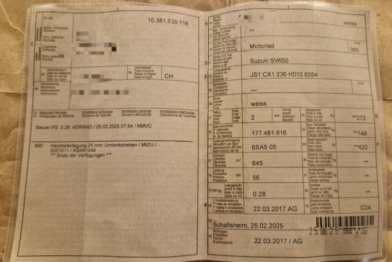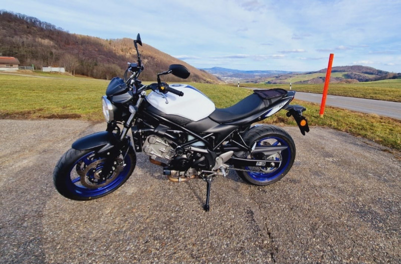 Zuverlässige Suzuki SV in Weiss/Blau – ein hervorragendes Strassenmotorrad.